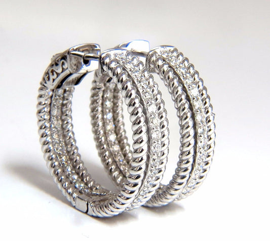 1.55ct natural round brilliant in/out diamond hoop earrings 14kt g/vs 1 inch