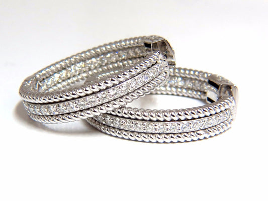 1.75ct natural diamond hoop earrings 14kt g/vs Barley Rope Twist 3D & Button