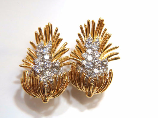 8.00ct Circular Domed Diamond Cocktail Cluster Clip Earrings 18kt 5 Row