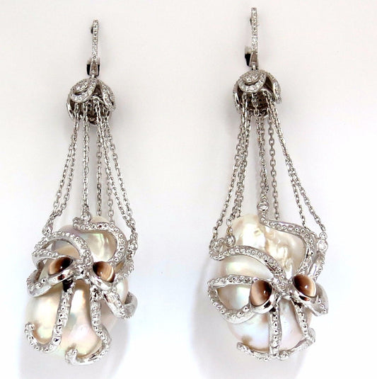 GIA Certified 30mm Baroque Pearls Catseye Ocotopus diamond dangle earrings