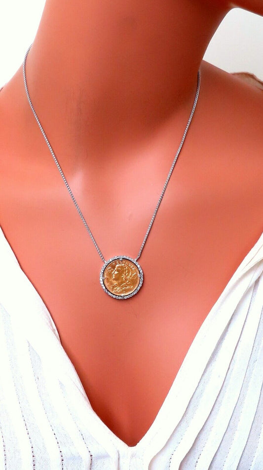 Gold 1935 20 Franc Helvetia Diamond Necklace 14kt gold
