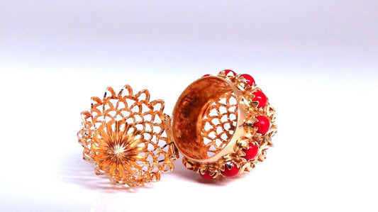 Functional Poison Pill Pendant Open Filigree Detail 18kt gold coral