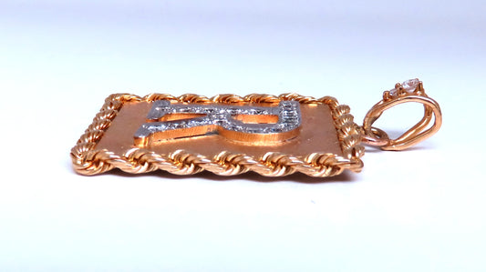 Initial R Diamond Vintage Rope Twist Sandblast Plate Pendant 14kt Gold 12370