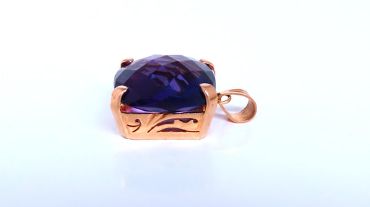 18.50ct Rose Cut Cushion Natural Amethyst Pendant 14kt Gold 12372