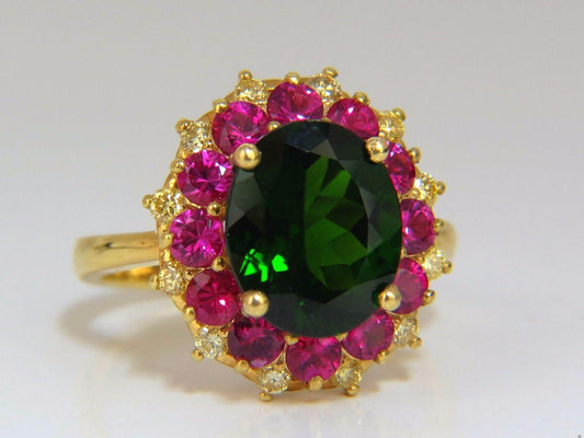 5.30ct Natural Deep Green Diopside Fancy Yellow diamonds Ruby Ring Halo 10612**