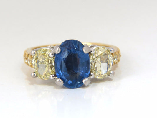 GIA Certified 5.42ct Natural No Heat Sapphire Yellow Diamonds Ring 18kt unheated