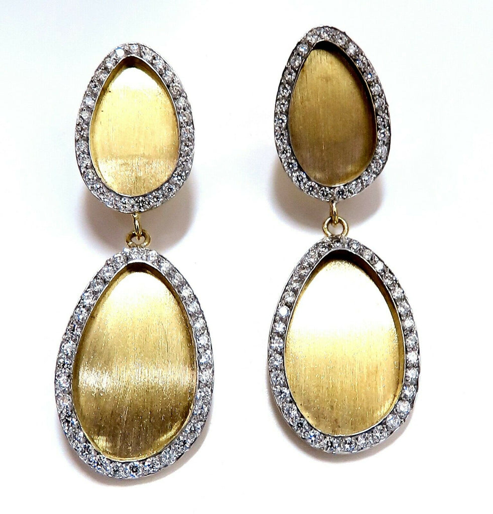 1.30ct Natural Diamonds Tear Drop Form Brush Finish Clip Earrings 14 Karat