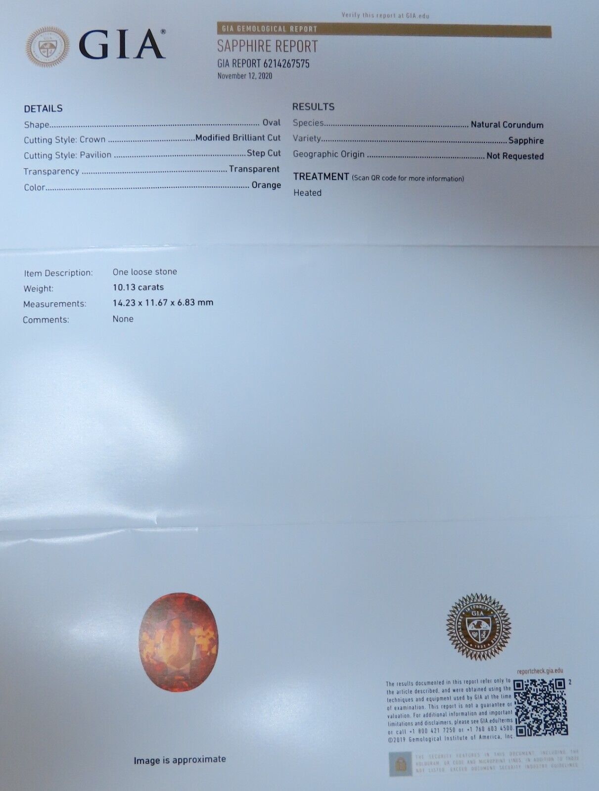 10.13ct GIA Certified Natural Orange Sapphire diamonds ring 14kt