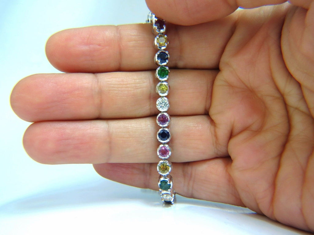10.30ct natural ruby emerald sapphires diamond tennis bracelet 14kt gem line