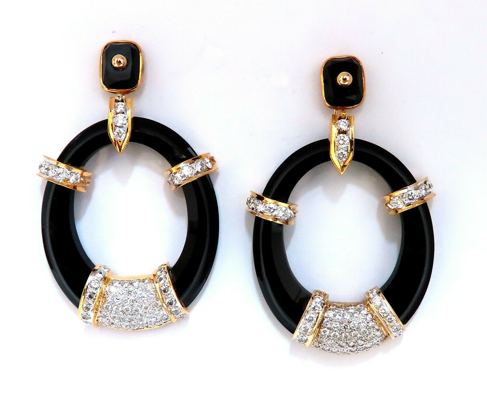 3.00ct Natural Round Cut Diamonds Jet Black Onyx Clip Earrings 14 Karat