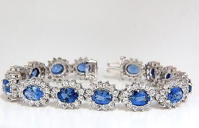 18KT 28.50CT NATURAL SAPPHIRES DIAMONDS BRACELET CLUSTER HALO LINKED