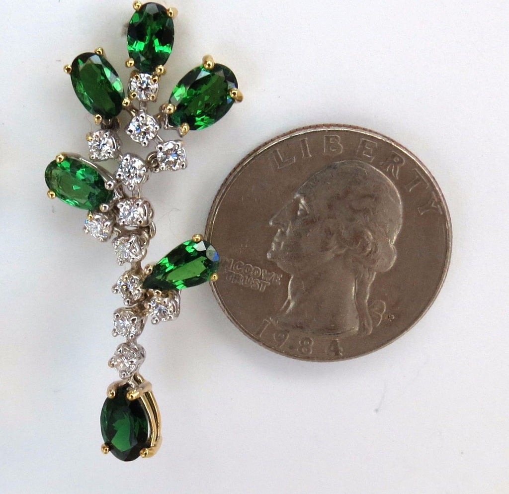 8.77ct natural vivid green tsavorite diamond dangle earrings 18kt cluster vine