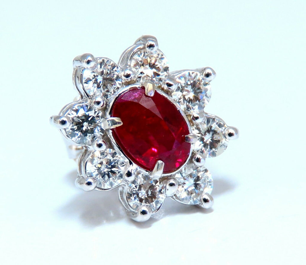 GIA Certified 3.77ct Natural Heat Ruby Diamond Cluster Earrings 14kt Unheated
