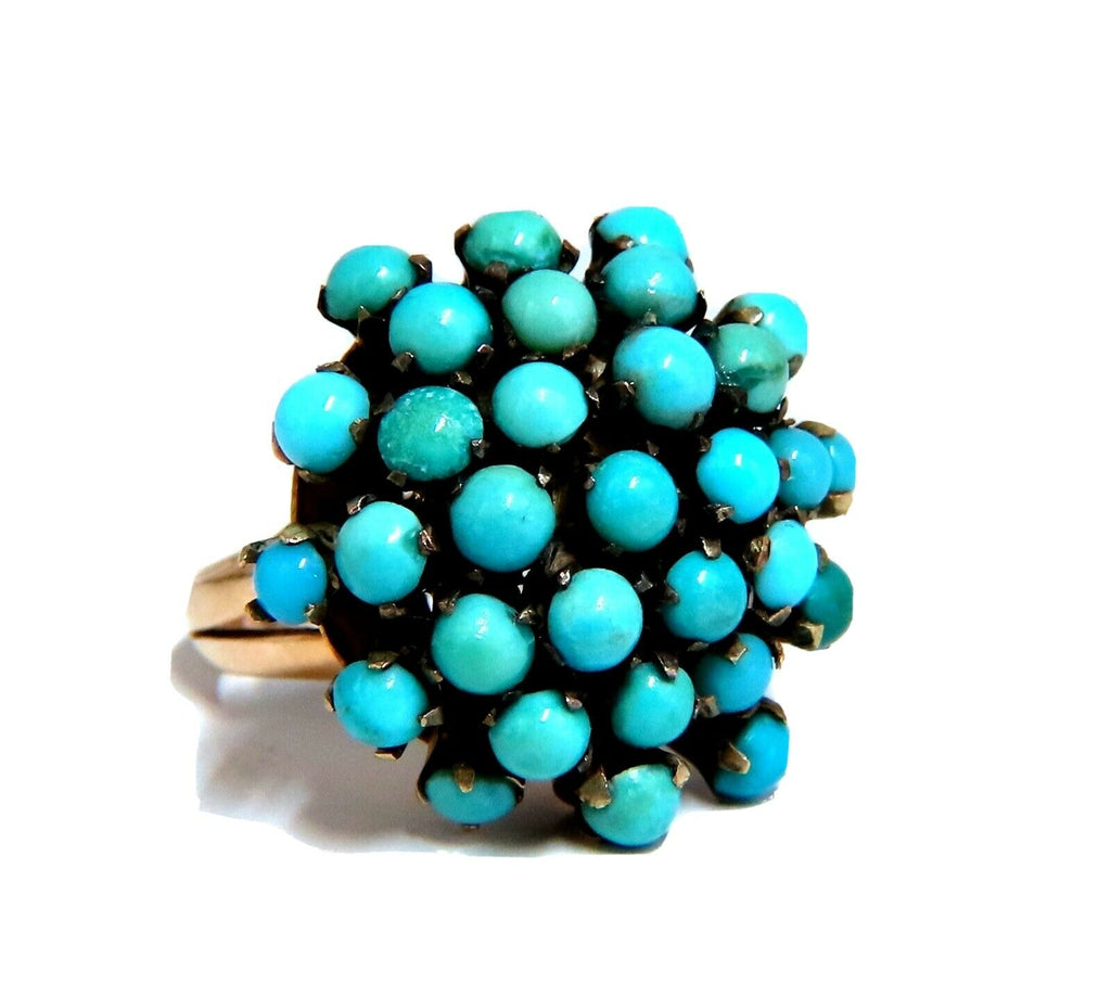 European Vintage Persian Turquoise cluster burst ring 14kt